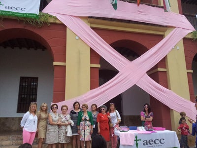 El Ayuntamiento de Berja luce desde esta mañana un gran lazo rosa realizado en lana por varias mujeres del municipuo en homenaje a los afectados ... por esta enfermedad. Un oequeño trocito de cada una, con 70 puntos realizados con agujas del 6 que suponen un gran compromiso.