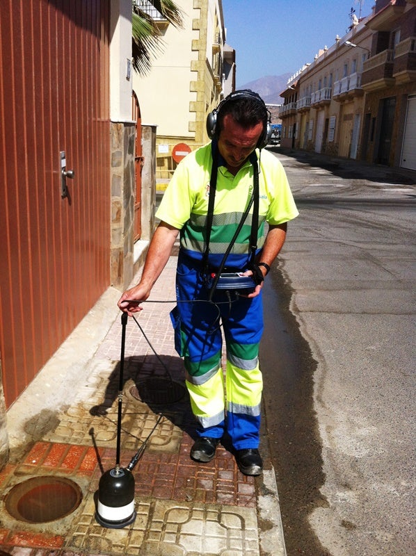 La tecnología se pone al servicio de los escapes de agua en Berja. La empresa concesionaria del servicio, Aqualia, ha localizado más de medio millar de fugas gracias a innovadores sistemas de localización como sensores inteligentes, geófonos y 'GPRS'. Los trabajos se realizan por la noche cuando los vecinos duermen y el consumo de agua es mínimo. Según un informe elaborado por Aqualia, en los últimos 18 meses se han detectado 528 fugas «que no eran visibles sobre el terreno» y se han recorrido más de 200 kilómetros en la búsqueda, la mayoría a pie. Debido a su capacidad de amplificación, el geófono permite detectar deficiencias invisibles a la vista y orienta a los operarios en esta labor a través del sonido. El dispositivo se desarrolla entre las doce de la noche y las seis de la mañana. «Para que el sonido de estos escapes de la red sea reconocible y no se confunda con el paso normal del agua por las tuberías», matizan desde Aqualia. Esta tarea corre a cargo de los fontaneros, encargados y jefes de servicio que habitualmente trabajan a lo largo del día «lo que supone un plus de implicación con el servicio municipal de aguas de Berja».