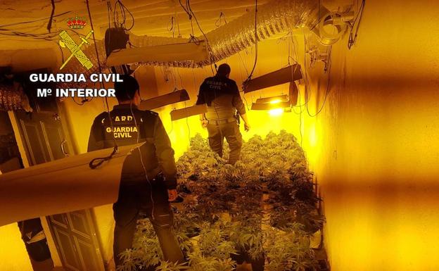 Una vez situadas las viviendas, los agentes llevan a cabo el registro de ambas, encontrando un total de 489 plantas de marihuana, la mitad de ellas en gran estado de maduración que iban a ser cosechadas próximamente, así como gran cantidad de aparatos de aire acondicionado, conductos, filtros, lámparas, y diferente material eléctrico utilizado para el desarrollo del cultivo.