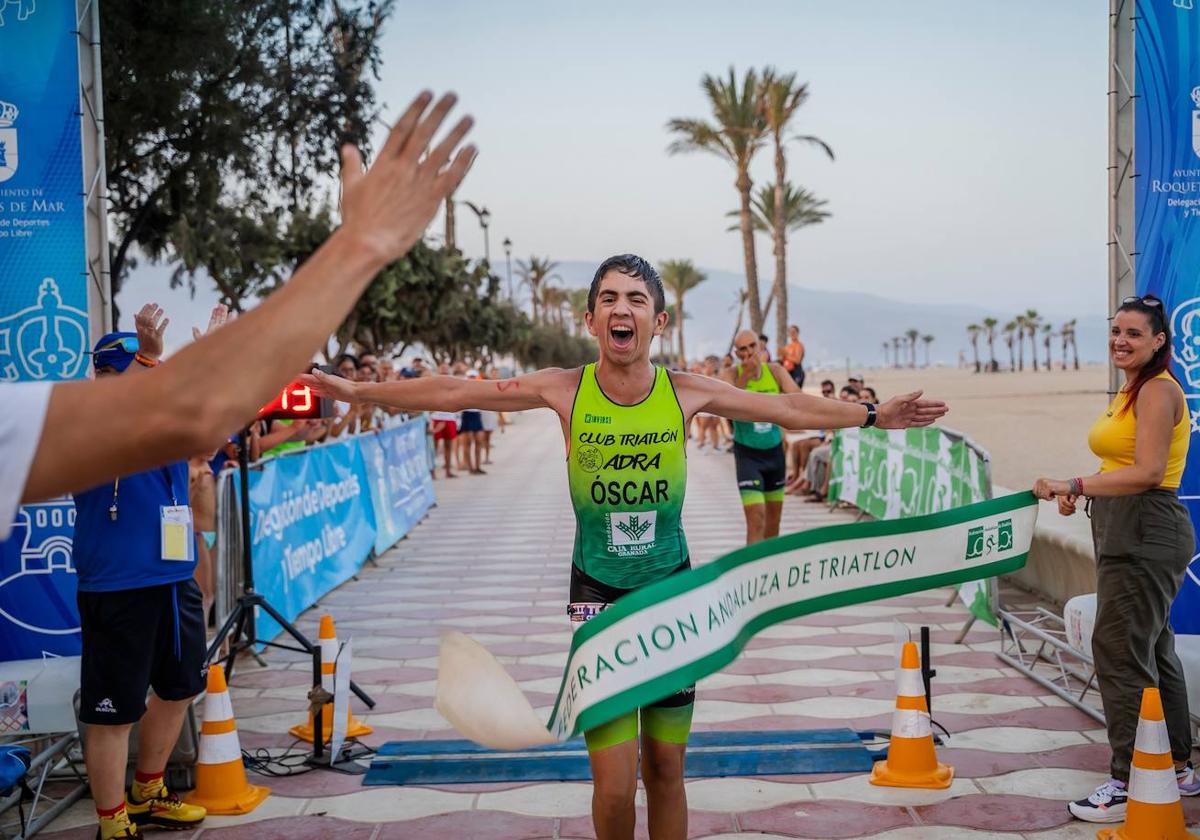 En la categoría cadete femenino Alba Alonso fue la única representante. En el apartado masculino Alberto Linares Rubio, Jorge Sánchez Martínez y Óscar Castillo. «Para este último fue un día muy especial para él, gracias a la Federación Andaluza de Triatlón, que colaboró para que pudiera realizar el triatlón acompañado de su entrenador -Diego Souto- en un gesto de esfuerzo reseñable y fue premiado como el se merece», se apuntó desde el club abderitano.