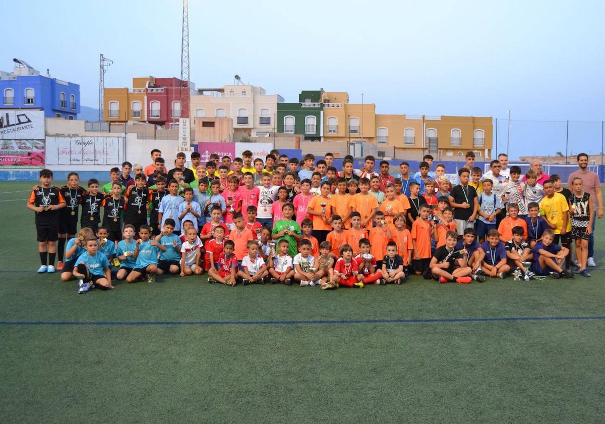 Asimismo, durante esta jornada, el CF Adra puso el broche de oro a este torneo con la presentación de las equipaciones para la temporada 2023/24. El portavoz del equipo de Gobierno, José Crespo, y el concejal de Deportes, Juan Antonio Fernández, junto al presidente del Club, Francisco Montes, han sido los encargados de hacer entrega de los trofeos a los equipos mejor clasificados y una medalla participativa a los jugadores de este torneo, que se ha desarrollado en el mes de junio y primeros días del presente mes de julio, en las categorías Bebé, Prebenjamín, Alevín, Infantil y Cadete.