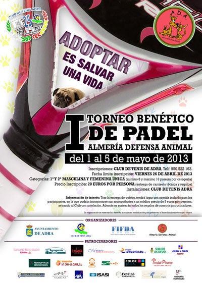 Un total de 48 parejas, 96 personas, se enfrentarán estos días en el Torneo benéfico que ha organizado el Club de tenis de Adra a beneficio de El refugio de ADA, Almería Defensa Animal.