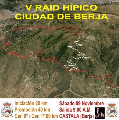 Con escenario en la Sierra de Gádor y organizado por el Patronato Municipal de Deportes del Ayuntamiento de Berja con la colaboración Junta de Andalucía, este sábado, 9 de noviembre, se celebra el "V Raid Hípico Ciudad de Berja". La salida tendrá lugar en el Parque Periurbano de Castala, a partir de las 9 de la mañana.