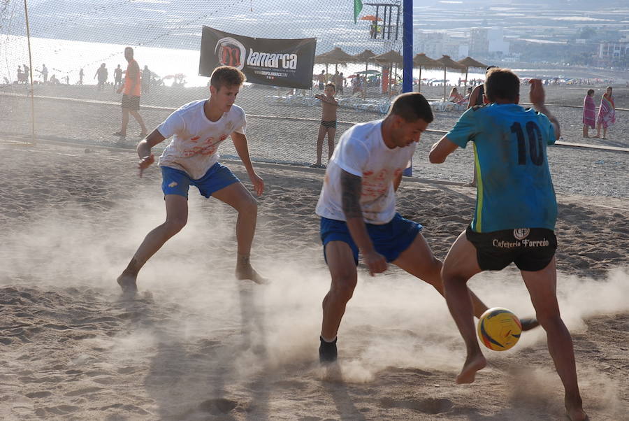 Antes, en semifinales, Cafetería El Torreón había eliminado a Semilleros los Crespos derrotándolo desde la tanda de penaltis, después de que el partido concluyese con empate a 3; mientras que Mena CF había hecho lo propio ante Los Vinilos por un resultado de 3-4. El torneo ha tenido como gran novedad e iniciativa local un partido de exhibición entre equipos de categorías de cantera del municipio de Adra, que ha servido como antesala a las semifinales y en el que un grupo de más de una veintena de chavales han podido disfrutar del espectáculo del fútbol en la playa.