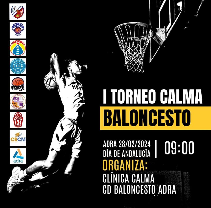 Se trata del I Torneo Calma Día de Andalucía, organizado entre el Club Deportivo Baloncesto Adra y la clínica especializada en tratamientos de adicciones Calma. Cuenta, además, con la colaboración del área de Deportes del Ayuntamiento de Adra. Al torneo asistirán «los mejores clubes de baloncesto de las provincias de Granada, Málaga y Almería». La delegación malagueña estará formada por los clubes EBG Málaga y Torre Basket. De la provincia de Granada, han confirmado su participación los clubes G+B y Costa de Motril. Competirán, además, los clubes CB Almería, CD Roquetas y CD SAFA. En total, serán doce los equipos que convertirán el Día de Andalucía en una gran fiesta del baloncesto en Adra.